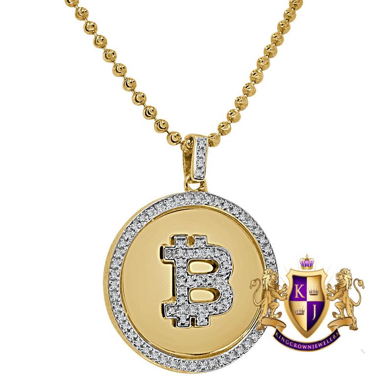 Real Genuine Diamond Bitcoin Money Currency 10k Gold Finish Mini Round Pendent Charm Chain Set 1 25 Walmart Com